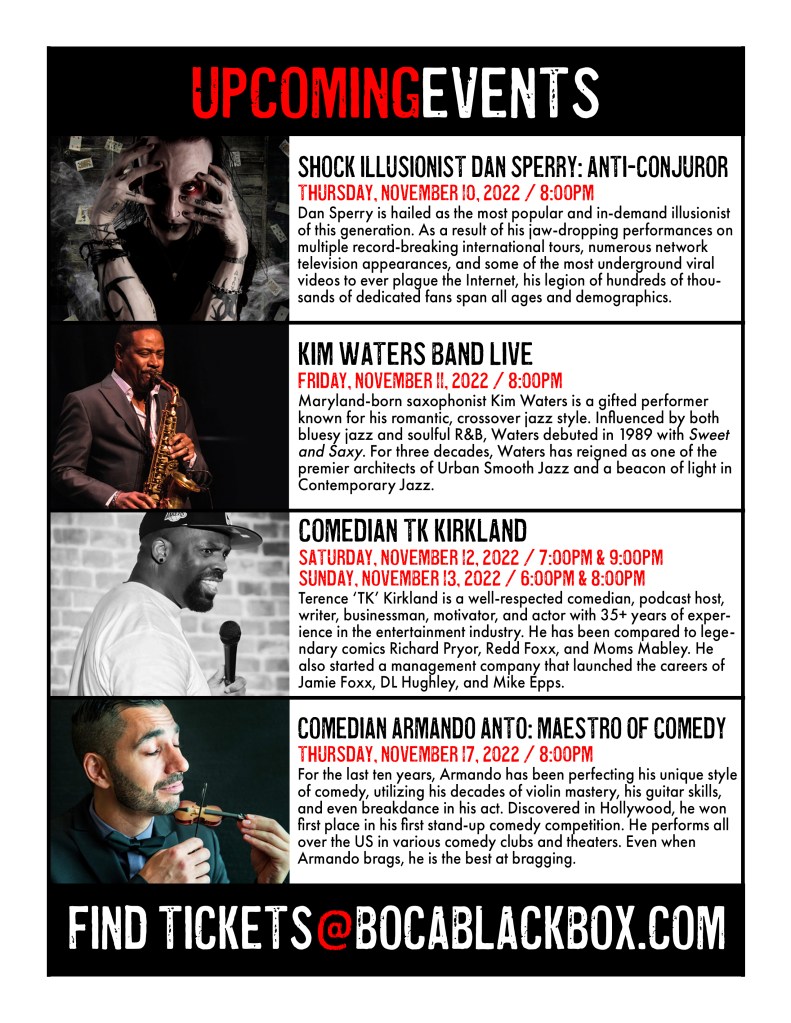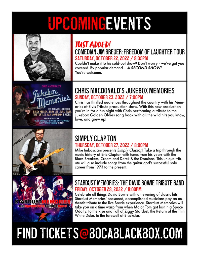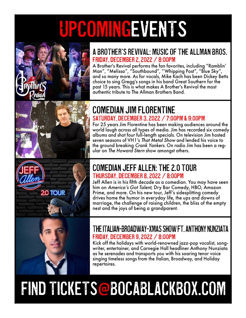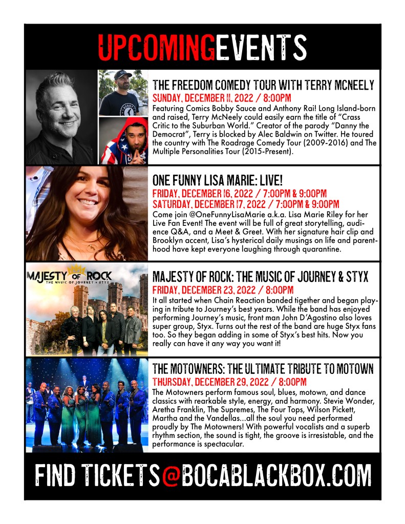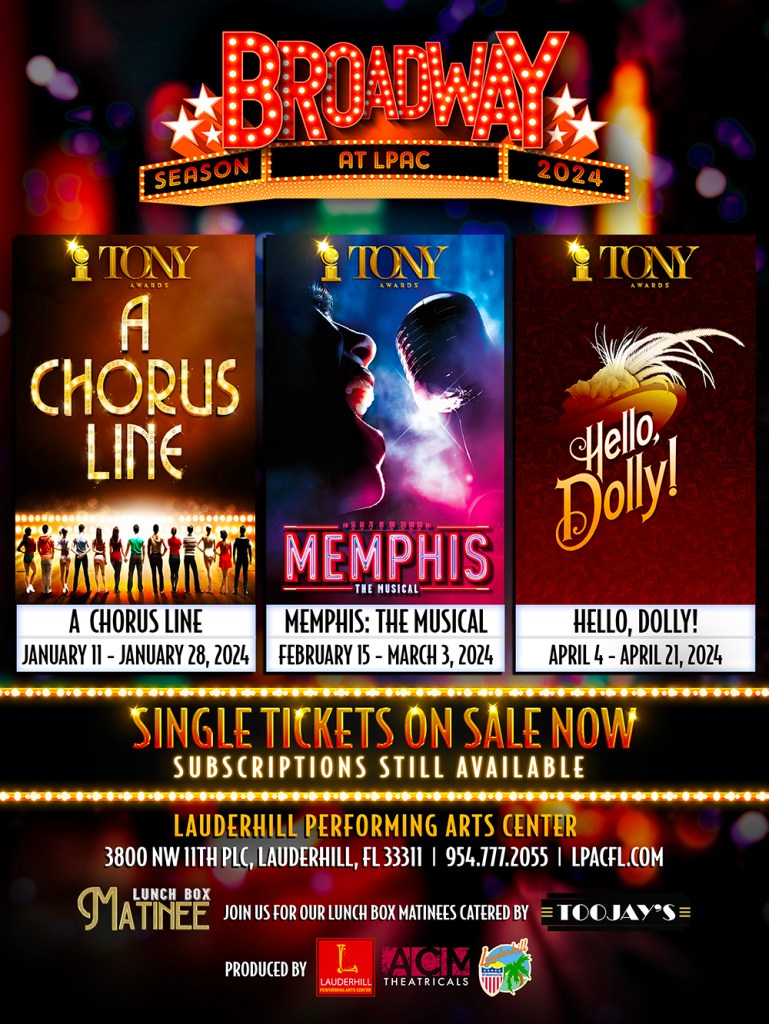 Delray Beach Playhouse • Pompano Beach Live • Coral Springs Center for the Arts • Lauderhill Performing Arts Center